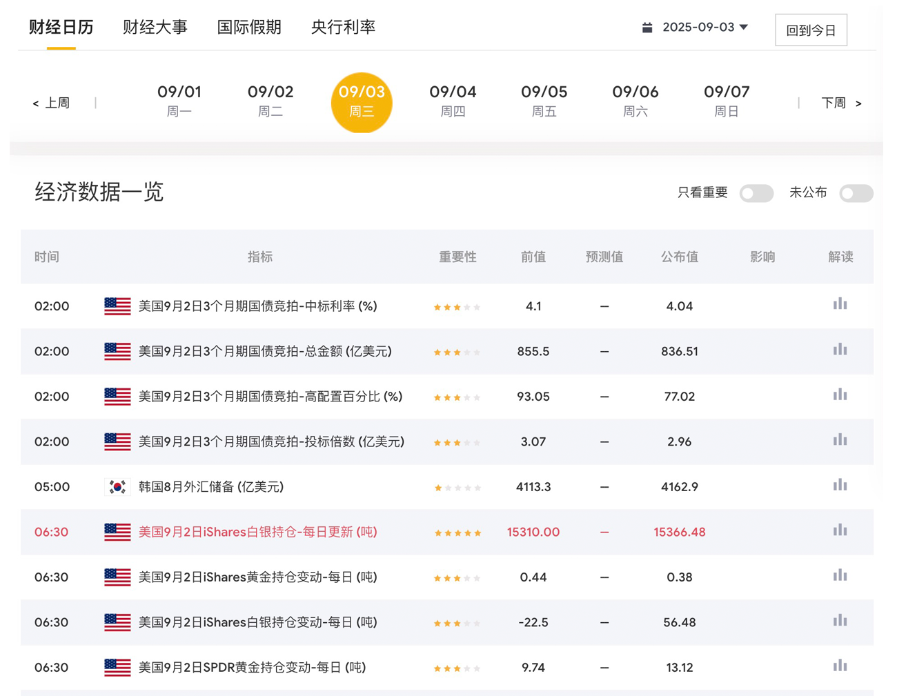 5. 经济周历当周